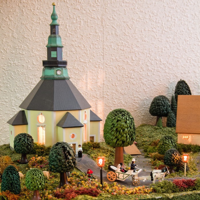 Ein weitere Produktlinie sind unsere aufwändig gefertigten Miniatur-Pferdegespanne. Um 1900, als die Automobiltechnik ihre ersten Schritte getan hatte und noch Pferdegespanne das allgemeine Straßenbild prägten, fing der Handwerker Franz Weber aus Seiffen an, dieses Straßenbild mit seinen Miniaturfuhrwerken nachzubilden, um so für viele Kinderherzen das begehrte Spielzeug zu schaffen. Als Urenkel führe ich nun diese Tradition fort. Viele Sammler der Erzgebirgischen Holzkunst erfreuen sich an diesen Miniaturen.